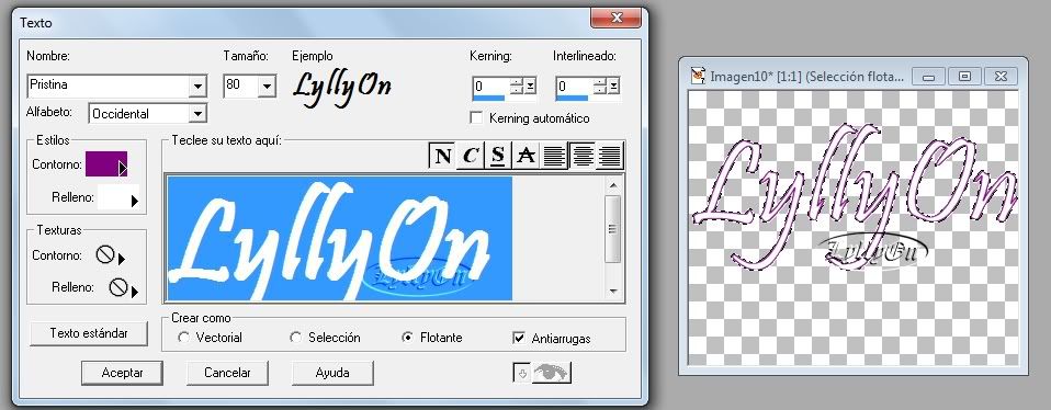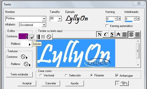 f)Elegir Fuente (yo elegí Pristina )/Tamaño/Estilos